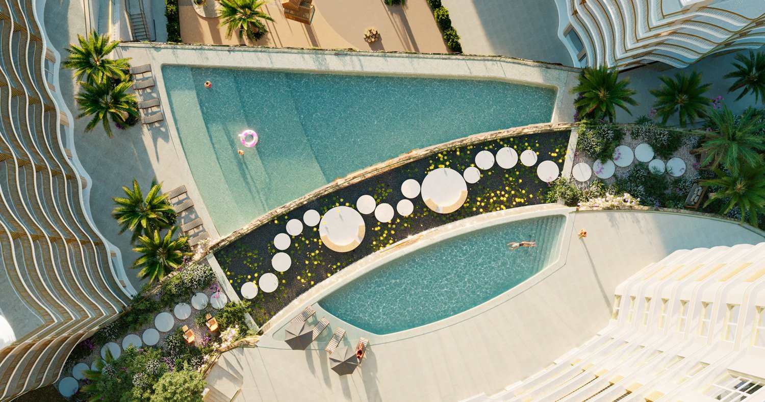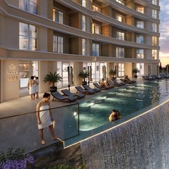 На территории два бассейна: инфинити бассейн в зоне SPA,перетекающий в водопад, и бассейн во дворе с исключительной приватностью, только для резидентов.